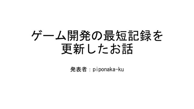 ゲーム開発の最短記録を 更新したお話 発表者:piponaka-ku