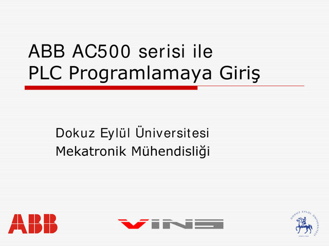 ABB firmasının AC500 serisi PLC'leri hakkında kısa bilgiler içeren ve CoDeSyS ile PLC programlama girişi anlatan bir sunumdur.