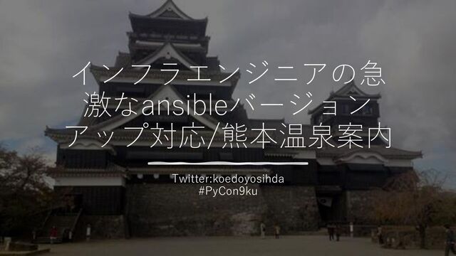 インフラエンジニアの急 激なansibleバージョン アップ対応/熊本温泉案内 Twitter:koedoyosihda #PyCon9ku