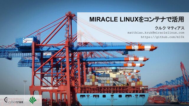 コンテナと仮想マシンの違い、Dockerのベースイメージを作る方法や使用方法を解説します https://miraclelinux.connpass.com/event/261154/ Matthias Krukさんの発表資料です。