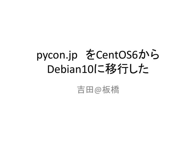 PyCon JP 2017-2019 Chair • Work :Cybertrust Japan Co., Ltd. – Provides product support for MIRACLE LINUX among other things. – Got first introduced to Python when building an internal website with Zope. • Co-Authored Debug Hacks (O'Reilly 2009).
