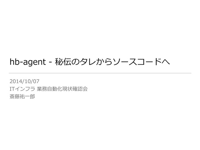 2014.10.08 @ 株式会社ハートビーツ MSPにおけるITインフラ 構築・運用業務の自動化の現状についてお話ししました。