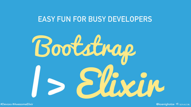 #Devoxx #AwesomeElixir @koenighotze Bootstrap |> Elixir EASY FUN FOR BUSY