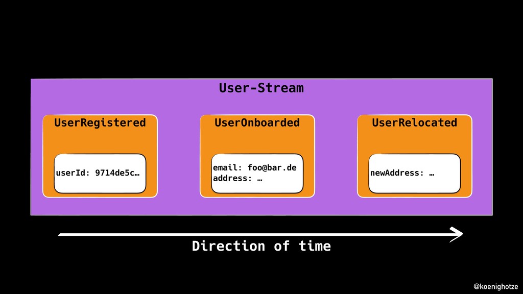 data and event type, typically ordered in creation order Stored in eventstore using unique identifiers Derives current state from stream of events Hydrated events result in builds can be stored as a
