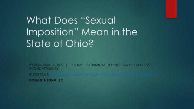 BY BENJAMIN A. TRACY, COLUMBUS CRIMINAL DEFENSE LAWYER AND CIVIL RIGHTS ATTORNEY BLOG POST: WHAT DOES “SEXUAL IMPOSITION” MEAN IN THE STATE OF OHIO? KOENIG & LONG LLC