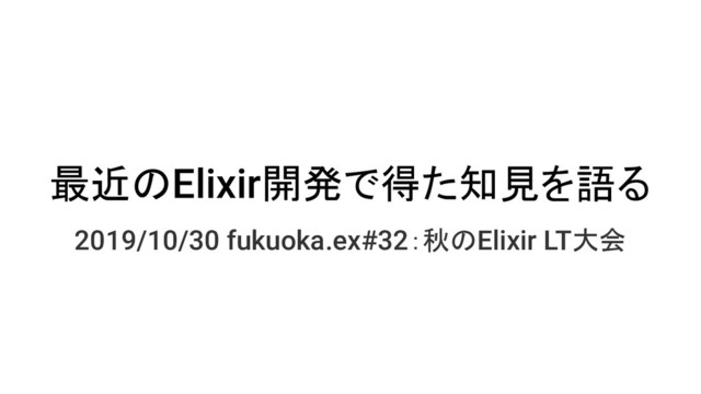 最近のElixir開発で得た知見を語る 2019/10/30 fukuoka.ex#32:秋のElixir LT大会