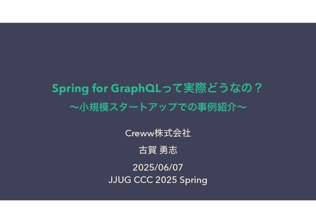 Spring for GraphQL࣮ͬͯࡍͲ͏ͳͷʁ ʙখنελʔτΞοϓͰͷࣄྫհʙ Crewwגࣜձࣾ ݹլ ༐ࢤ 2025/06/07 JJUG CCC