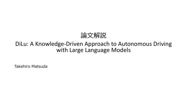 Presentation for explaining the paper "DiLu " presented from Shanghai Artificial Intelligence Laboratory, East China Normal University, The Chinese University of Hong Kong.