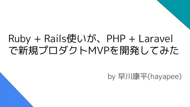 Ruby + Rails使いが、PHP + Laravel で新規プロダクトMVPを開発してみた by 早川康平(hayapee)