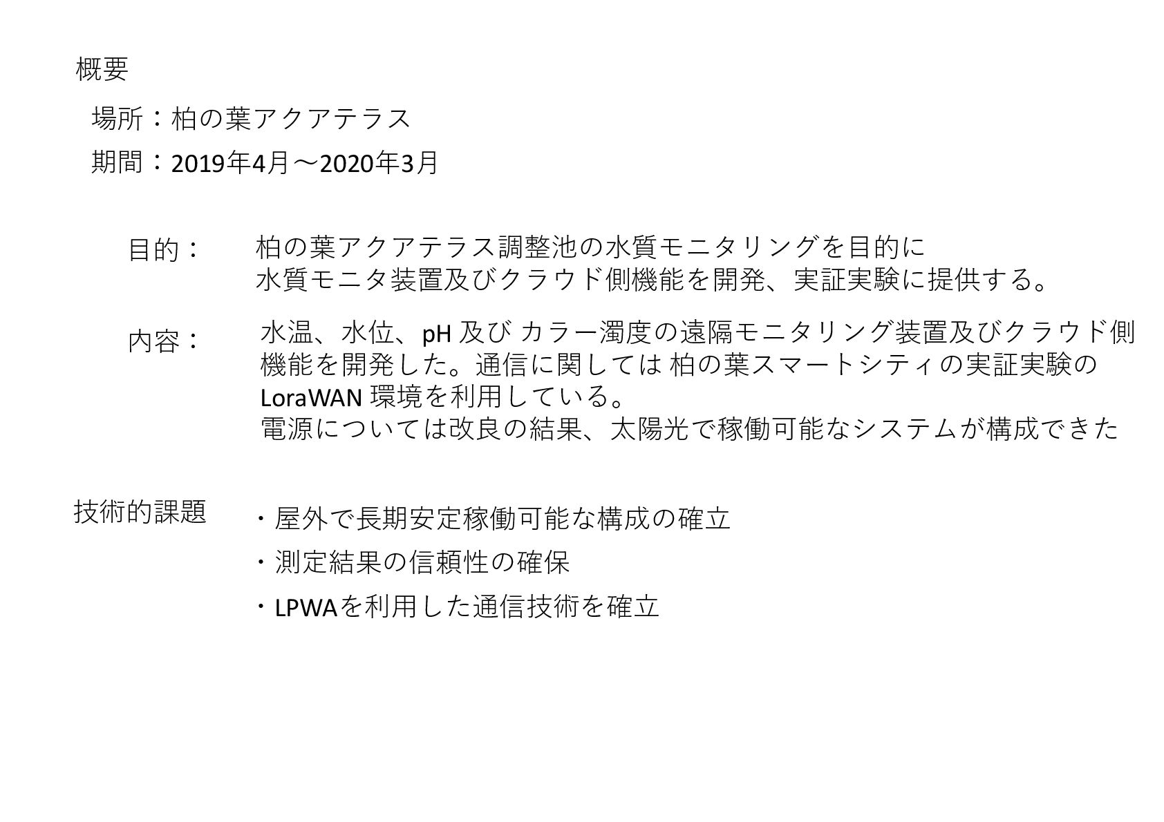 柏の葉キャンパス アクアテラス 水質モニタ実証実験報告書