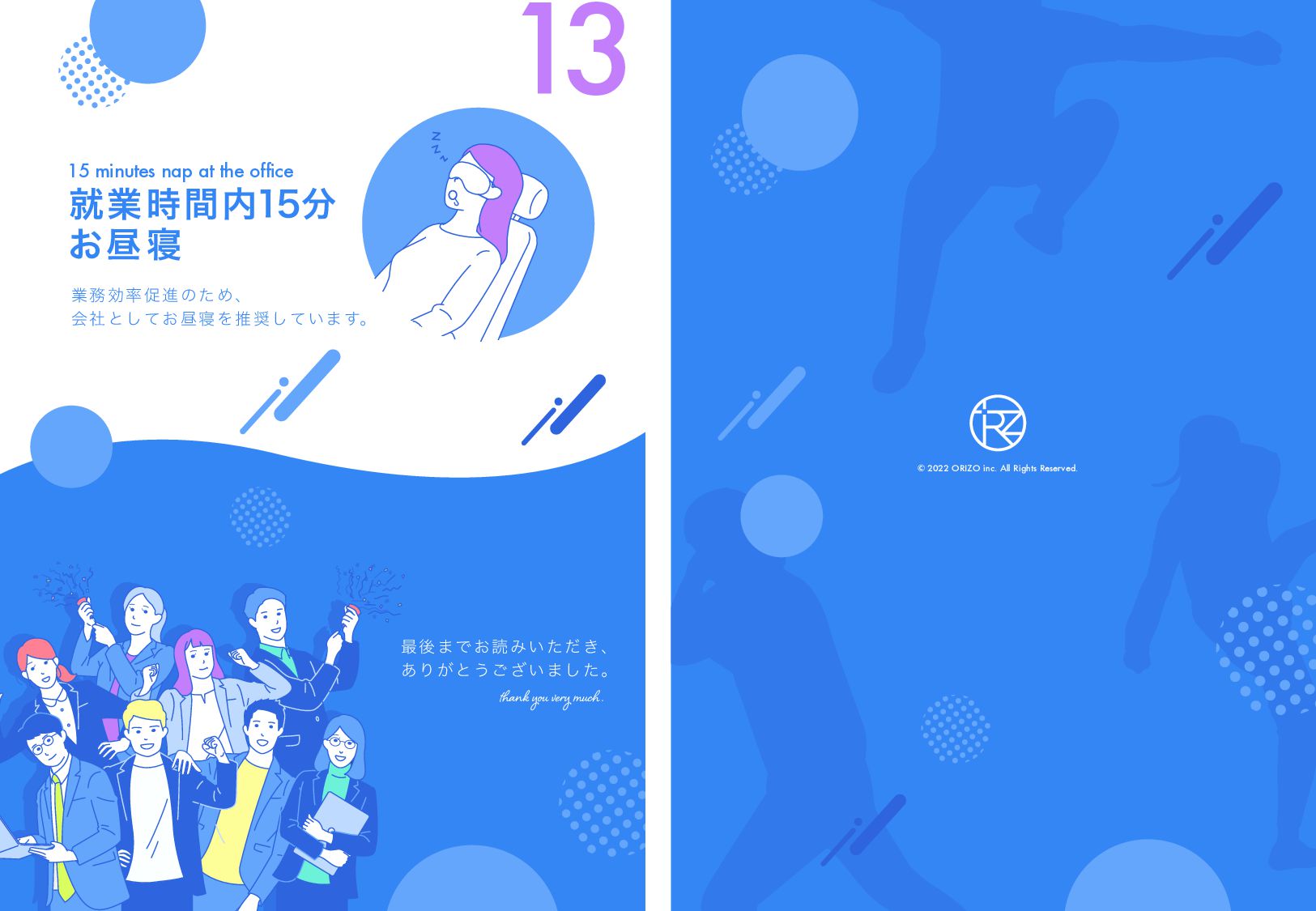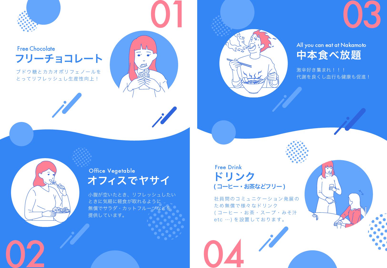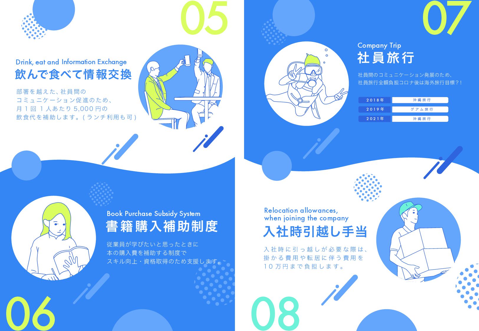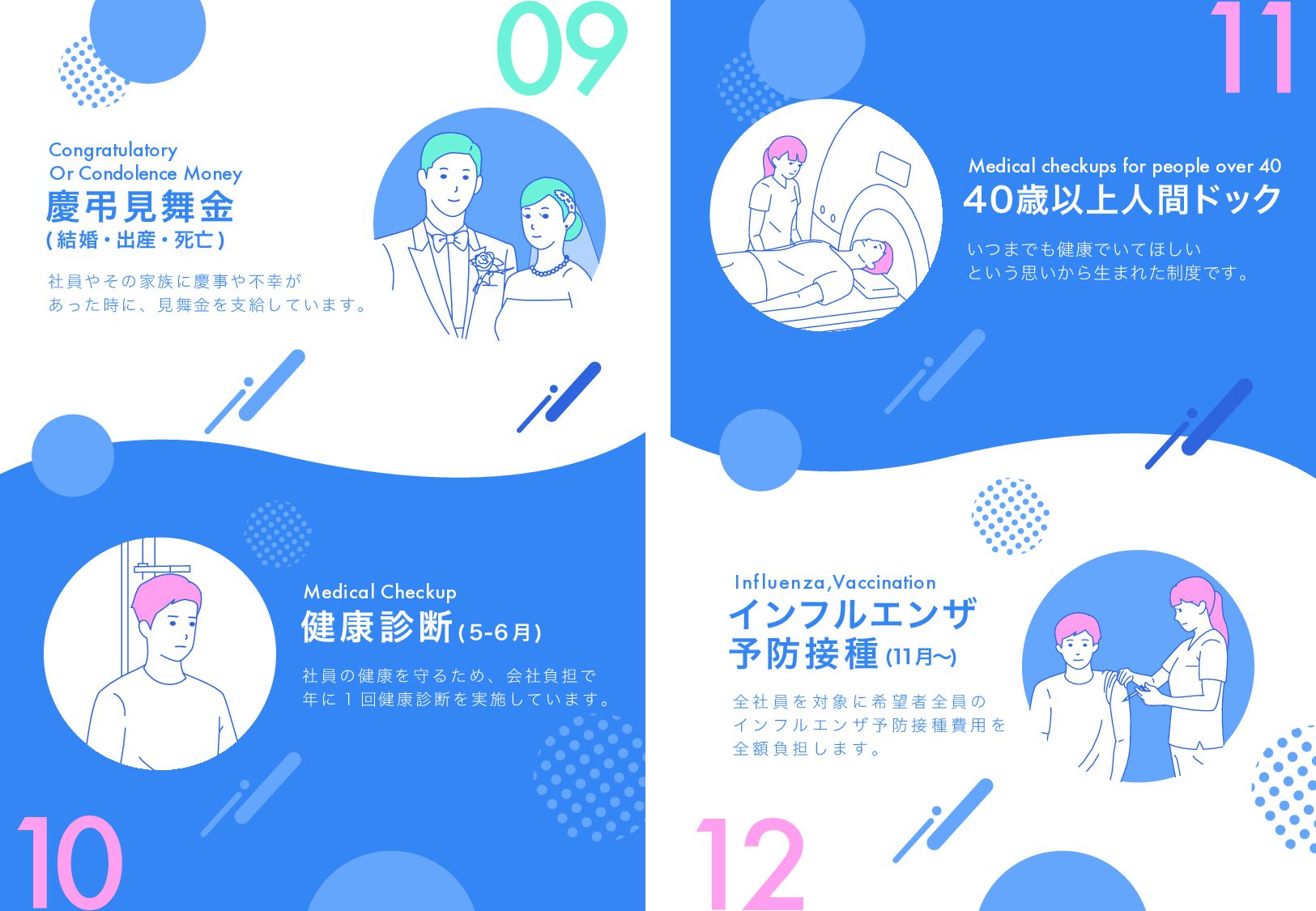 ҿ৯Λิॿ͠·͢ɻ ϥϯνར༻Մ ҿΜͰ৯ͯใަ Drink, eat and Information Exchange ैۀһֶ͕ͼ͍ͨͱࢥͬͨͱ͖ʹ ຊͷߪೖඅΛิॿ͢Δ੍Ͱ εΩϧ্ɾࢿ֨औಘͷͨΊࢧԉ͠·͢ɻ ॻ ੶ ߪೖิॿ੍ Book Purchase Subsidy System 05 06 ೖ ࣾ ࣌ ʹ Ҿ ͬ ӽ ͠ ͕ ඞ ཁ ͳ ࡍ ɺ ֻ ͔ Δ අ ༻ స ډ ʹ ͏ අ ༻ Λ ສ ԁ · Ͱ ෛ ୲ ͠ · ͢ ɻ ೖࣾ࣌Ҿӽ͠ख ࣾһؒͷίϛϡχέʔγϣϯൃలͷͨΊɺ ࣾһཱྀߦશֹෛ୲ίϩφޙւ֎ཱྀߦඪʁ ʂ ࣾ һ ཱྀ ߦ Company Trip 07 08 2 0 1 8 ɹ ɹ ɹ 2 0 1 9 2 0 2 1 ԭ ೄ ཱྀ ߦ ά Ξ Ϝ ཱྀ ߦ ԭ ೄ ཱྀ ߦ Relocation allowances, when joining the company