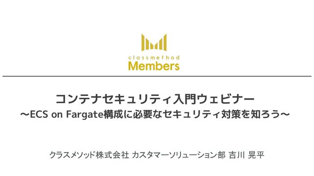コンテナセキュリティ入門ウェビナー ~ECS on Fargate構成に必要なセキュリティ対策を知ろう~