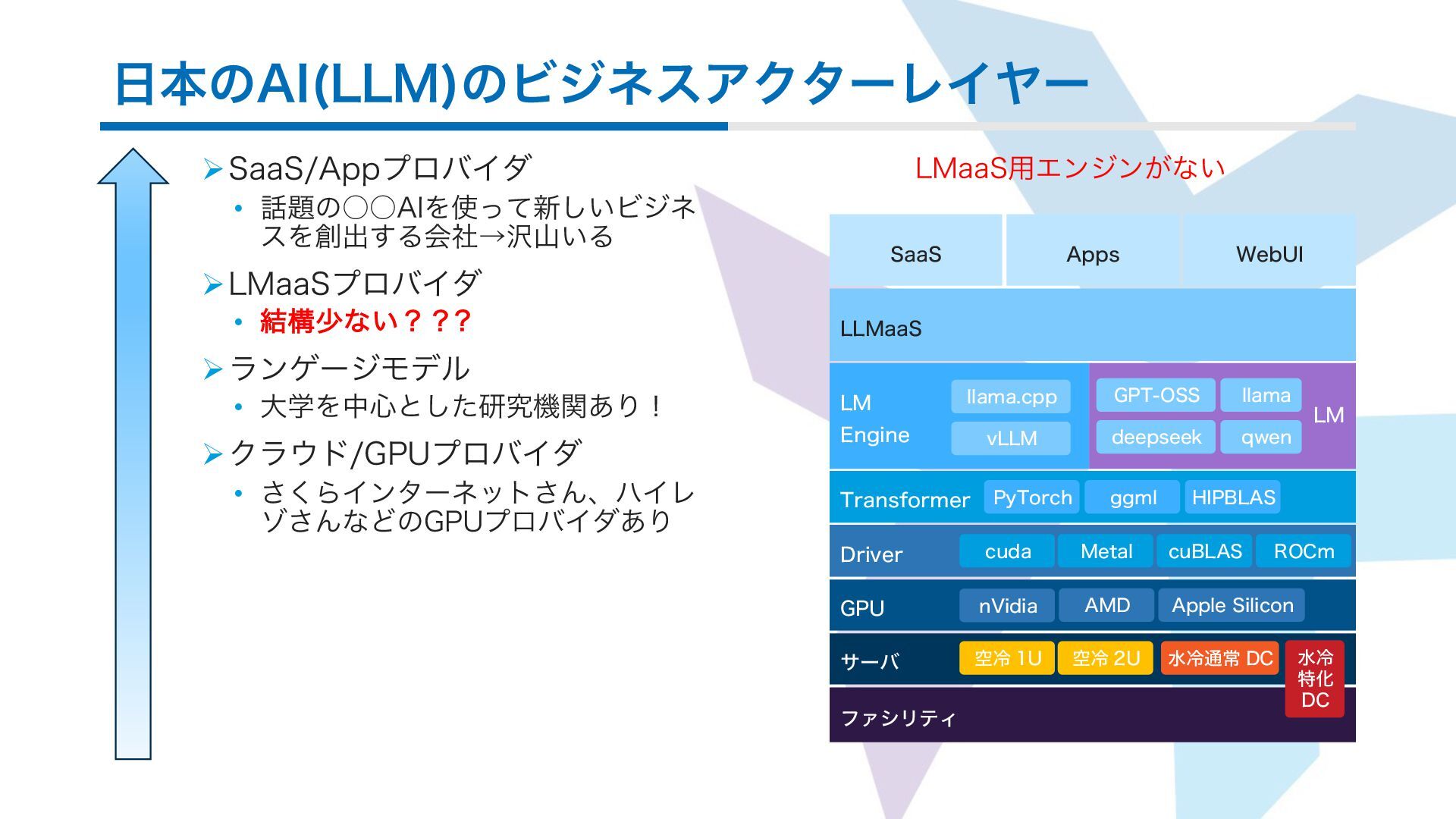 AIを活用したサービス開発に関わるエンジニア、SIer、データセンター事業者、およびAI基盤・クラウド基盤の将来像を検討する立場の方に向けた、実践的かつ議論可能なセッション資料です。