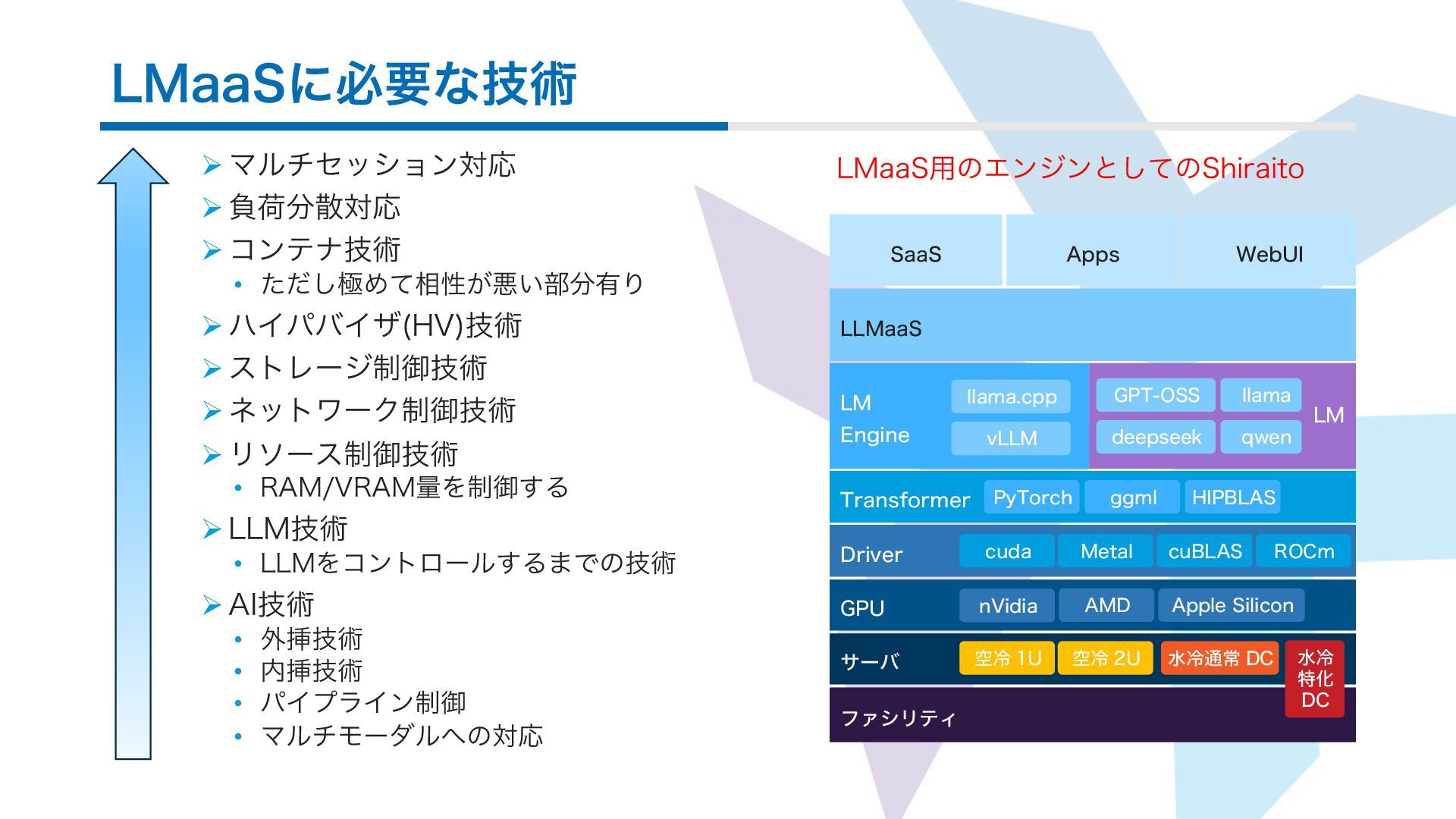 • LLMaaS(Language Model as a Service)として成立させるためのアーキテクチャ