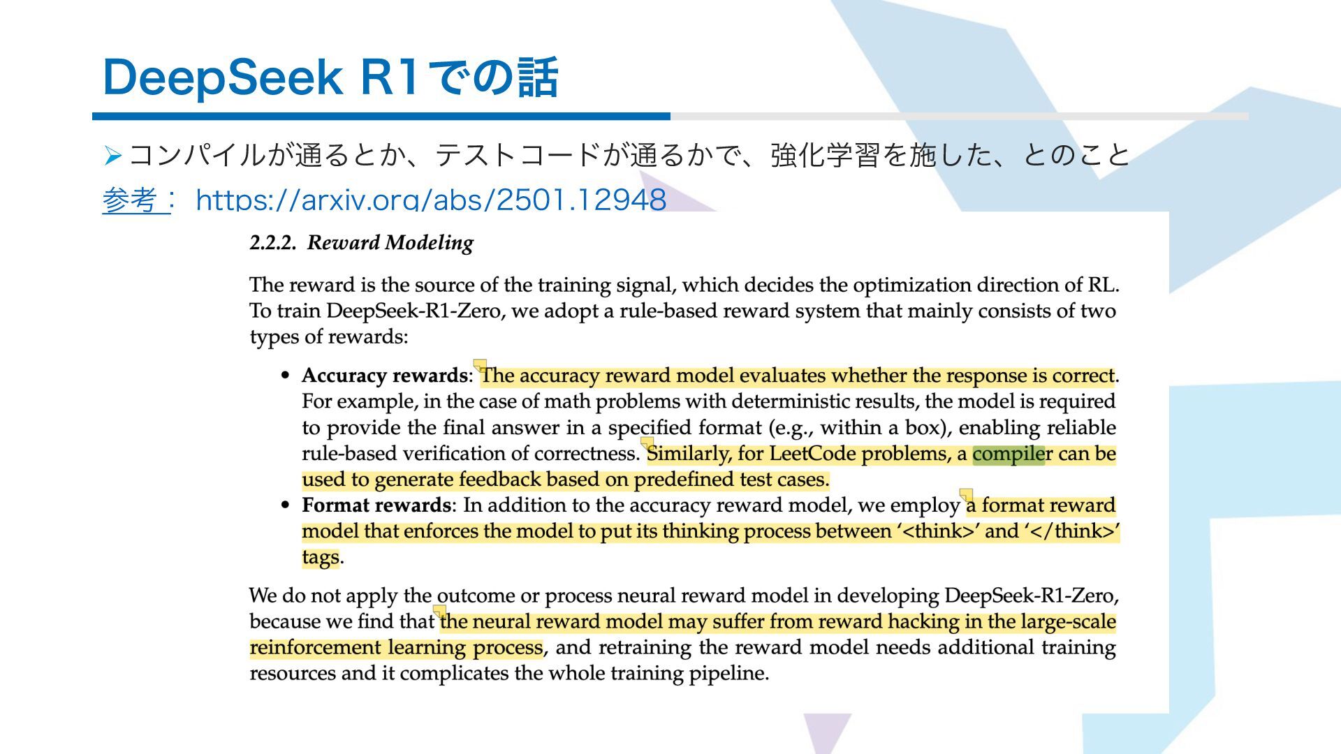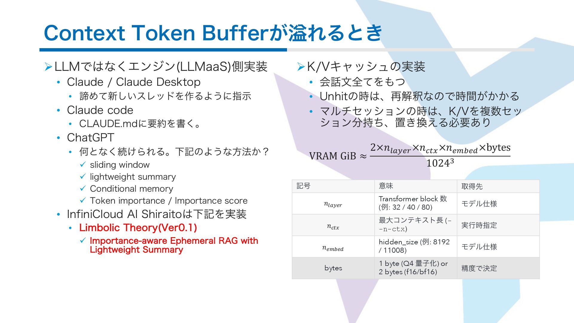 ݫີʹ͸ɺTVCXPSEDPEJOH͍ͯ͠ΔͷͰɺ୯ޠ਺ΑΓ΋ଟ͍ɻ • ࠓɺ࿩͍ͯ͠Δձ࿩Λ֮͑ͯΔهԱ ਓؒͰݴ͏୹ظهԱʹࣅͯΔ Ø 5SBOTGPSNFSͷ2,7ͷೖྗ͸ݻఆ௕ 5PLFO਺ • $IBU(15P LτʔΫϯ͔Β૿Ճɻਪఆ • $IBU(15 .τʔΫϯ ɺܥ΋ଟ෼.͙Β͍ɻ • $MBVEFܥ LτʔΫϯਪఆ ˠܥ ࠷େ.τʔΫϯ • (15044 ࠷େLτʔΫϯ • -MBNBܥ ࠷େLτʔΫϯ • 2XFO ࠷େLτʔΫϯ Ø ୹ظهԱʹࣅͯΔ㲔େ͖͍ํ͕ྑ͍ʁ • ձ࿩͸ଓ͚΍͘͢ͳΓ·͢ ͍֮͑ͯͯ͘Ε·͢ • 0 O ͳͷͰτʔΫϯ͕ഒʹ૿͑Δͱ73".ഒ❗ • -.࡞੒࣌ʹʮܾఆͯ͠ʯ࡞੒͞Ε͍ͯ·͢ɻ ॏཁ఺ ׬શݻఆ௕ 3"(৘ใ΋ɺγεςϜϓϩϯϓτ΋͜͜ʹೖΔ ਓؒͷ୹ظهԱʹࣅͯΔ