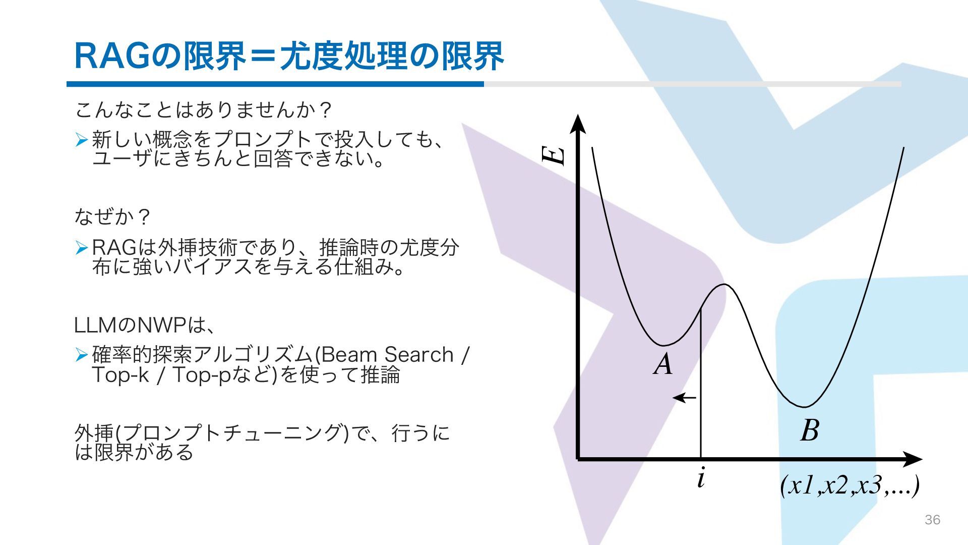 ߏ଄ԽσʔλΛ7FDUPSԽ • ϦΫΤετຖʹ • 7FDUPSݕࡧ • ݩσʔλͷߏ଄அยΛ$POUFYU΁஫ೖ Ø ϝϦοτ • ࢀߟॻΛݟͳ͕Β౴͑ΔϚχϡΞϧରԠͷΑ͏ͳ΋ͷ • ஌ࣝͷशಘ͸͍ͯ͠Δֶ͕श͸͍ͯ͠ͳ͍ Ø σϝϦοτ • $POUFYU5PLFO #VGGFSΛ࿘අ͢Δ • େ͖͗͢ΔϑΝΠϧͷ3"(ࢀর͸Ͱ͖ͳ͍ • શମΛݟͯ࿦͡ΒΕΔ಺༰ͱ͸૬ੑ͕ѱ͍ɻ 1SPNQU 3"( ϓϩάϥϜ $POUFYU஫ೖ 7FDUPS %# ͍ͣΕ΋ -.BB4Ͱ ࣮૷͢Δ෦෼ $POUFYU5PLFO#VGGFS ˓˓,ʙ.5PLFOT ਓͰݴ͏ͱ֓Ͷʮ୹ظهԱʯ *OQVU )JEEFO )JEEFO 0VUQVU #BTF--. ΢ΣΠτύϥϝλ਺ɿYY# JMJPO ਓͰ͍͏ͱ֓Ͷʮ௕ظهԱʯ