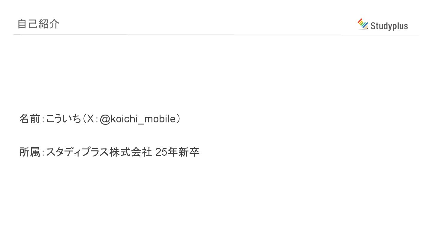 名前:こういち(X:@koichi_mobile) 所属:スタディプラス株式会社 25年新卒 自己紹介
