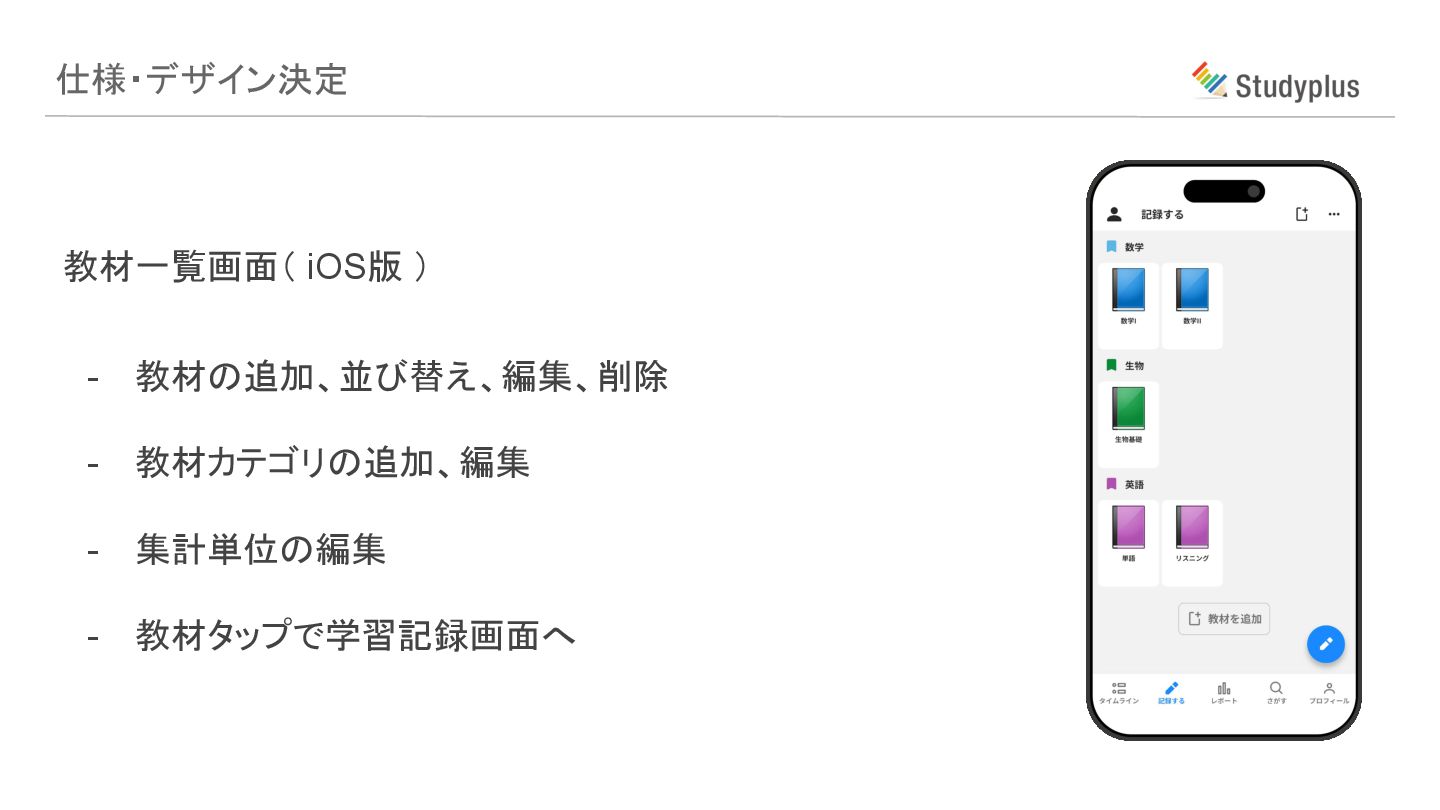 教材タップで学習記録画面へ 仕様・デザイン決定