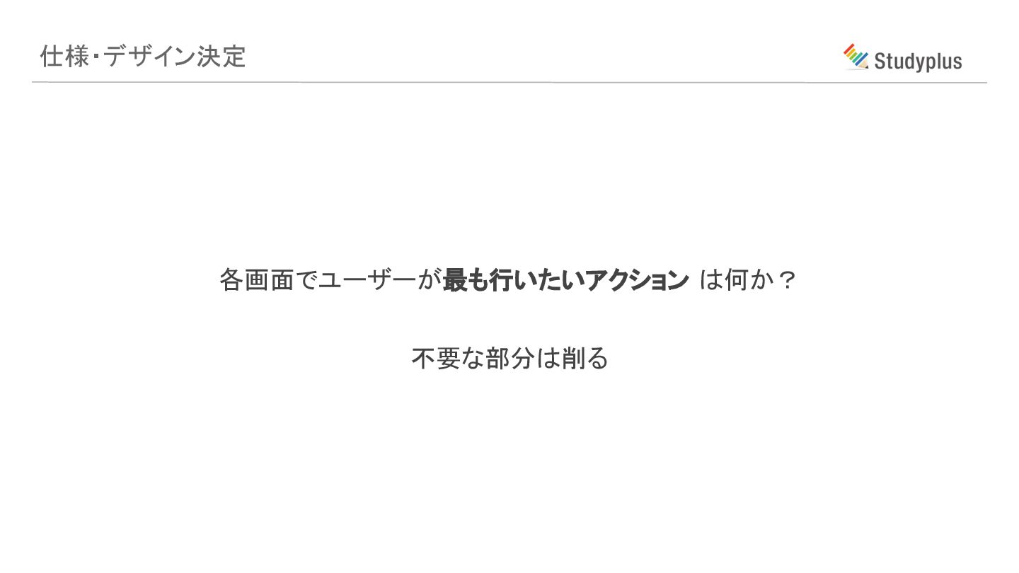 各画面でユーザーが最も行いたいアクション は何か? 不要な部分は削る 仕様・デザイン決定