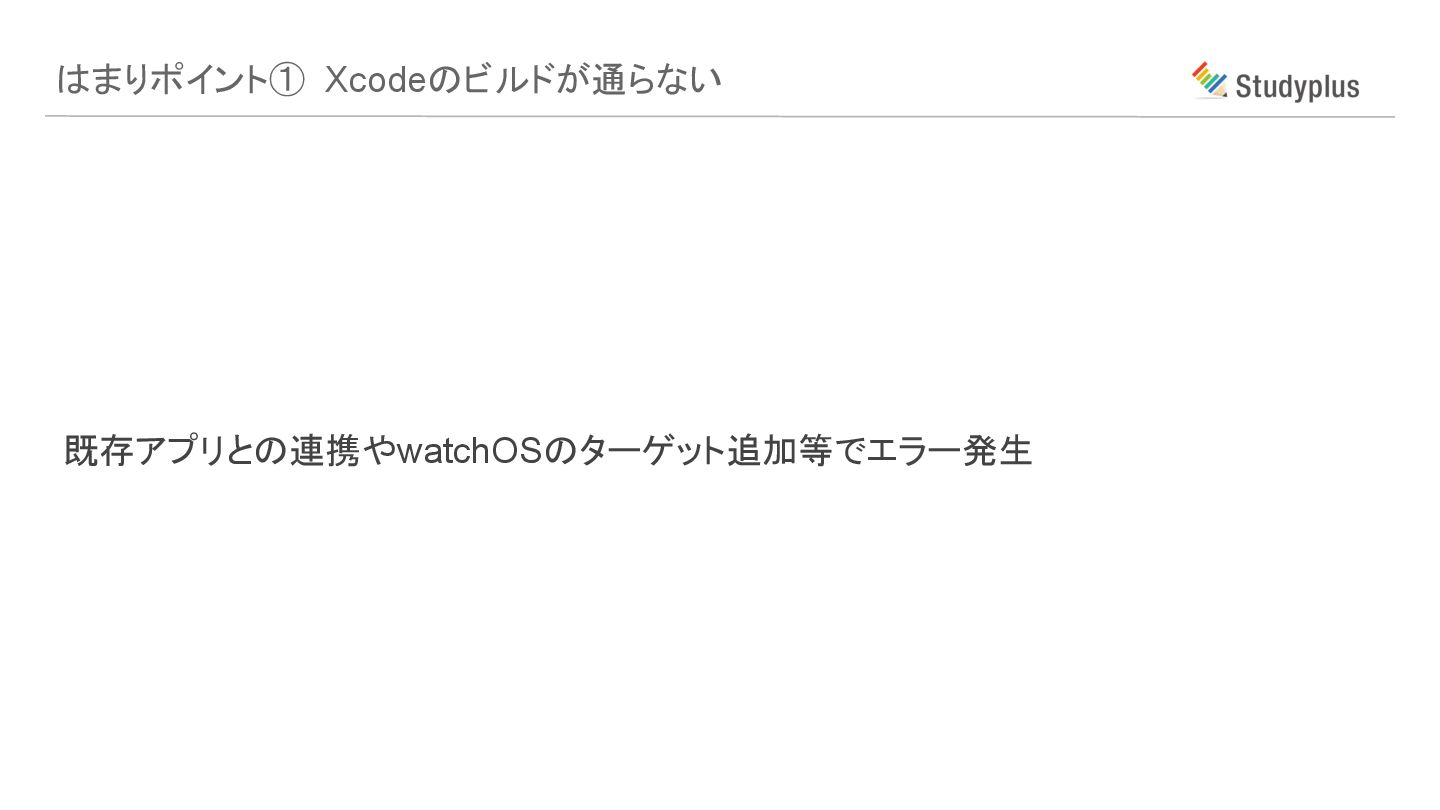 はまりポイント① Xcodeのビルドが通らない 既存アプリとの連携やwatchOSのターゲット追加等でエラー発生