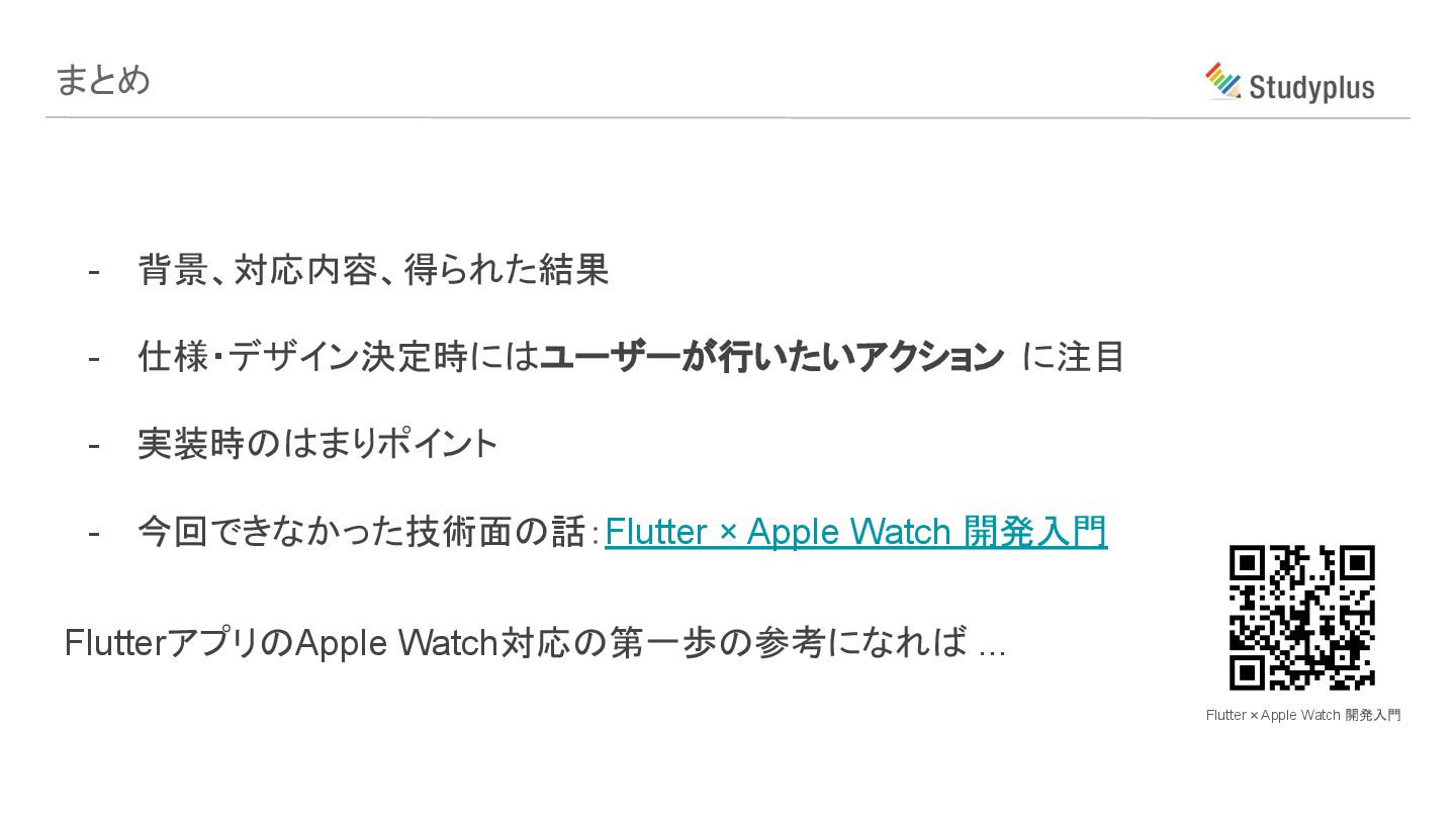 StudyplusにおけるFlutterアプリのApple Watch対応事例 第9回 FlutterGakkai スポンサーセッション