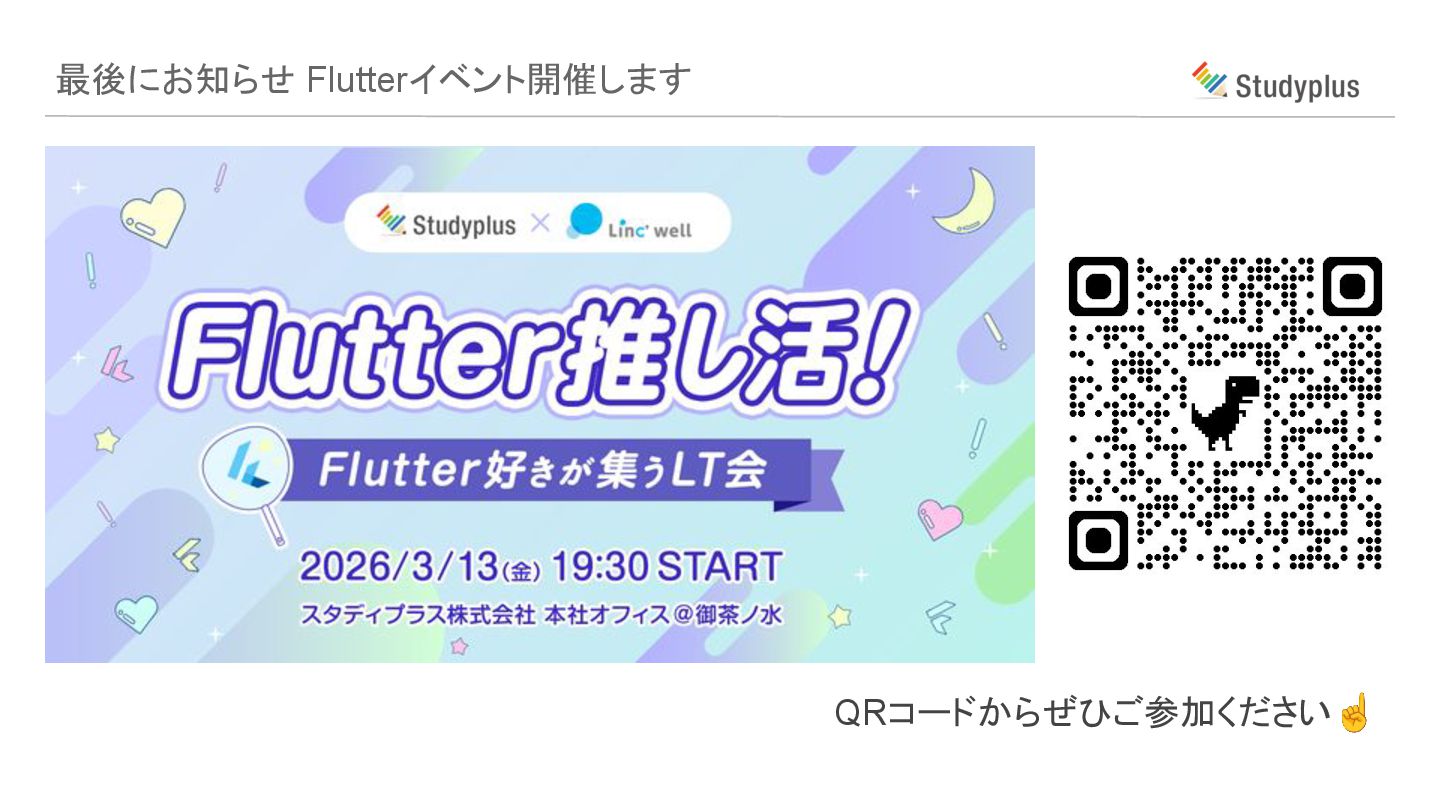最後にお知らせ Flutterイベント開催します QRコードからぜひご参加ください☝