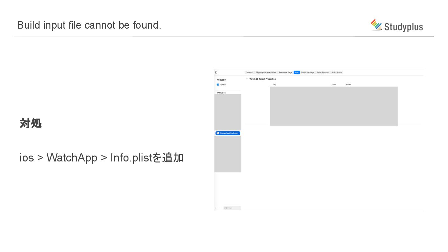 対処 ios > WatchApp > Info.plistを追加 Build input file cannot