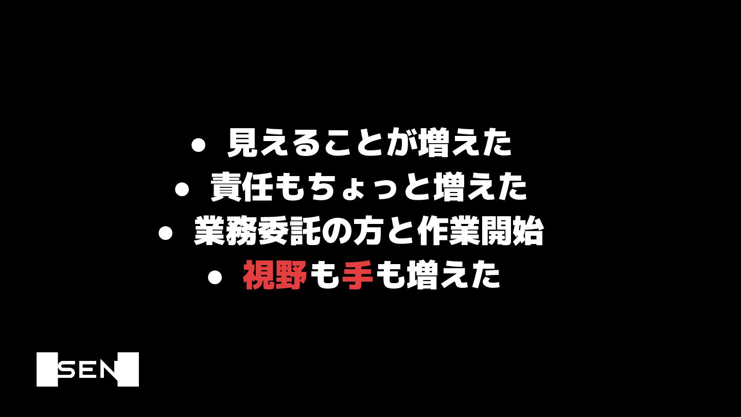 • 見えることが増えた • 責任もちょっと増えた • 業務委託の方と作業開始 • 視野も手も増えた