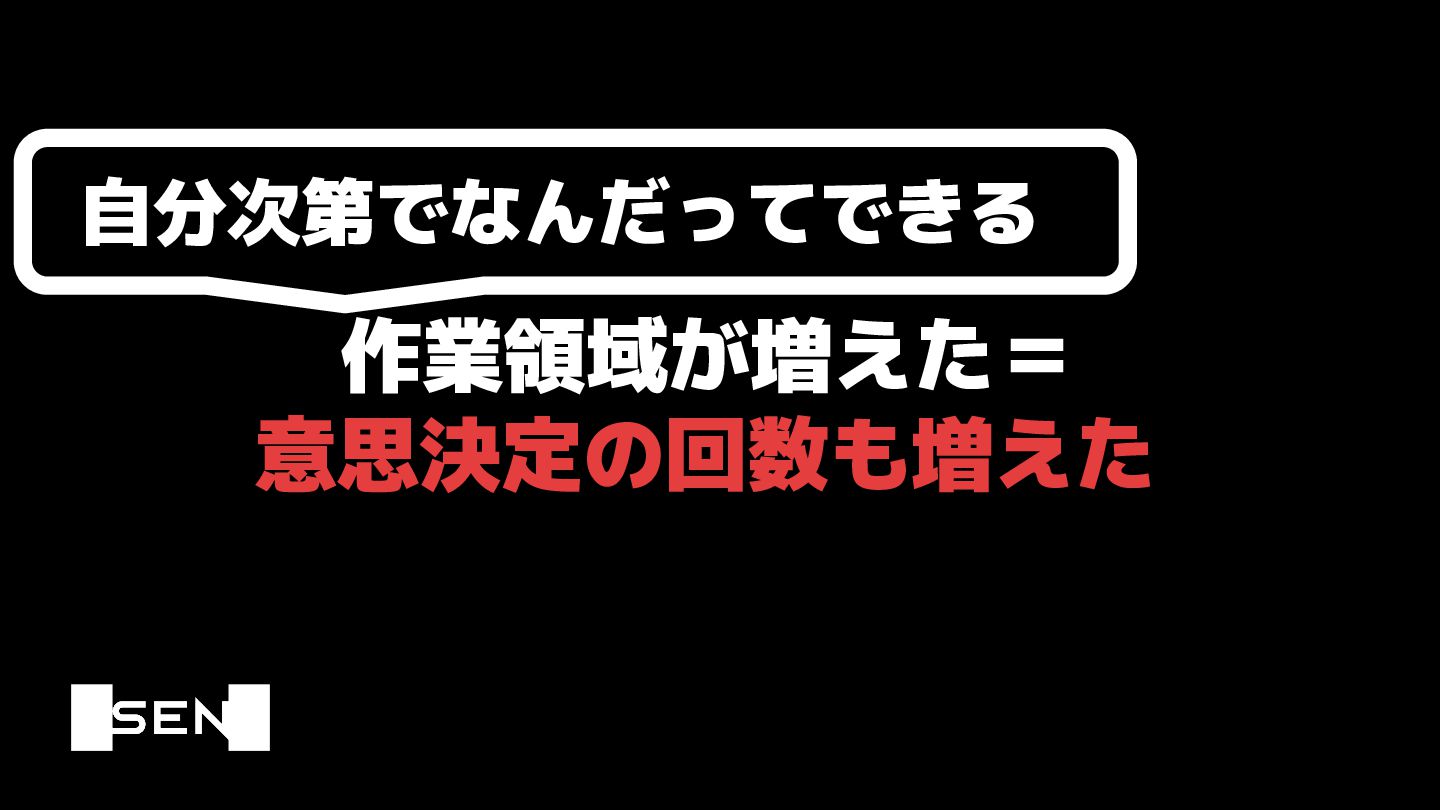作業領域が増えた= 意思決定の回数も増えた 自分次第でなんだってできる