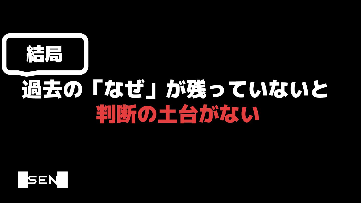 過去の「なぜ」が残っていないと 判断の土台がない 結局