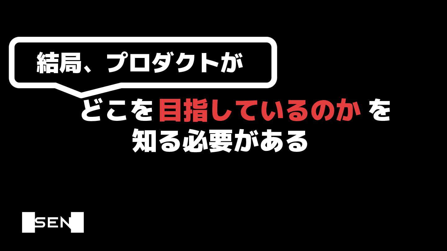 どこを目指しているのか を 知る必要がある 結局、プロダクトが