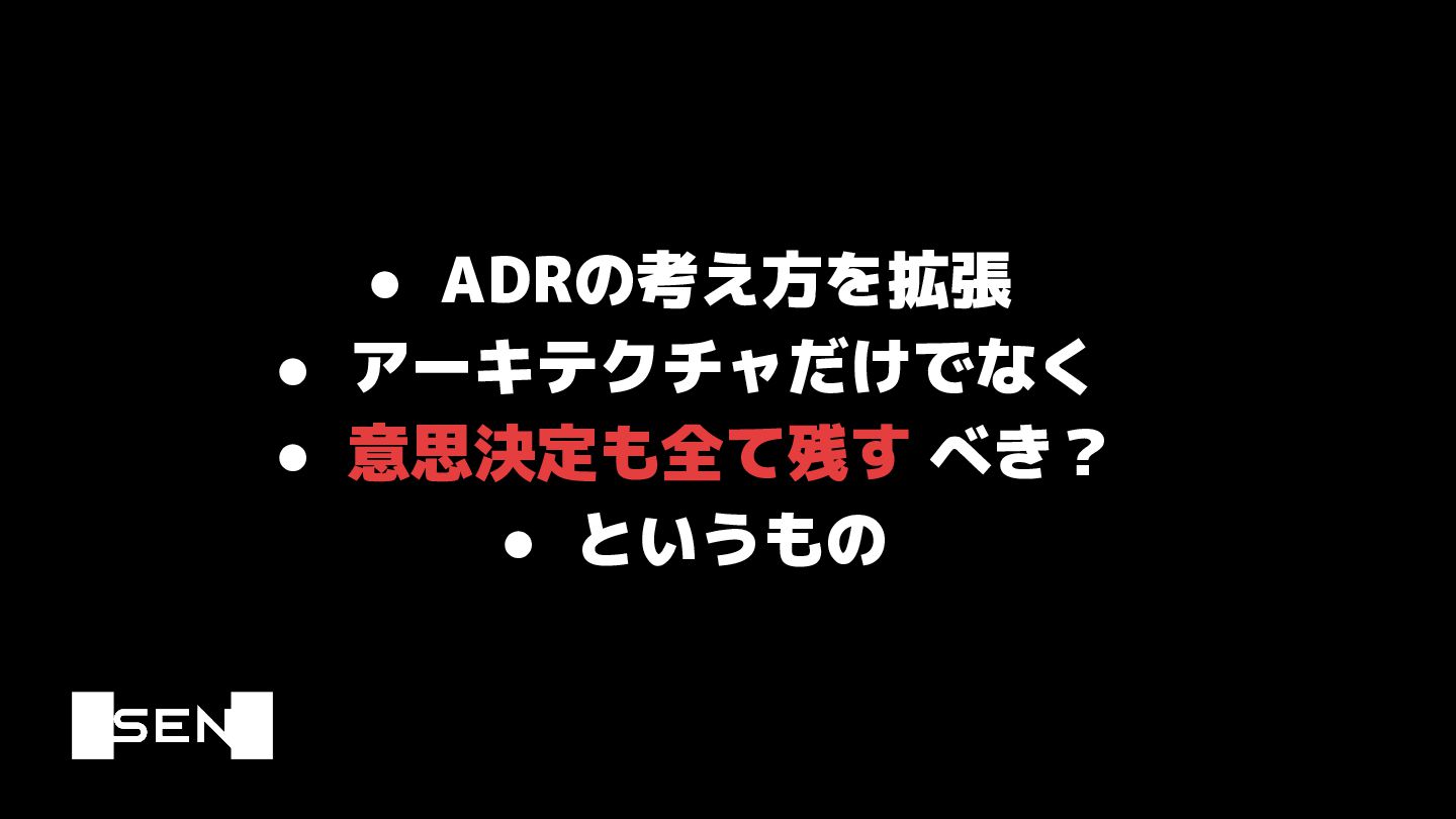 • ADRの考え方を拡張 • アーキテクチャだけでなく • 意思決定も全て残す べき? • というもの