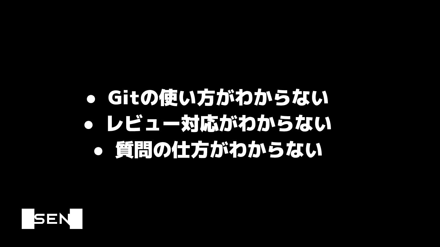 • Gitの使い方がわからない • レビュー対応がわからない • 質問の仕方がわからない