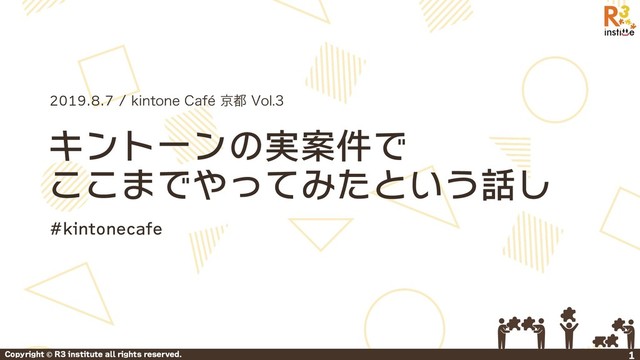 キントーンの実案件で ここまでやってみたという話し 1 Copyright © R3 institute all rights reserved.