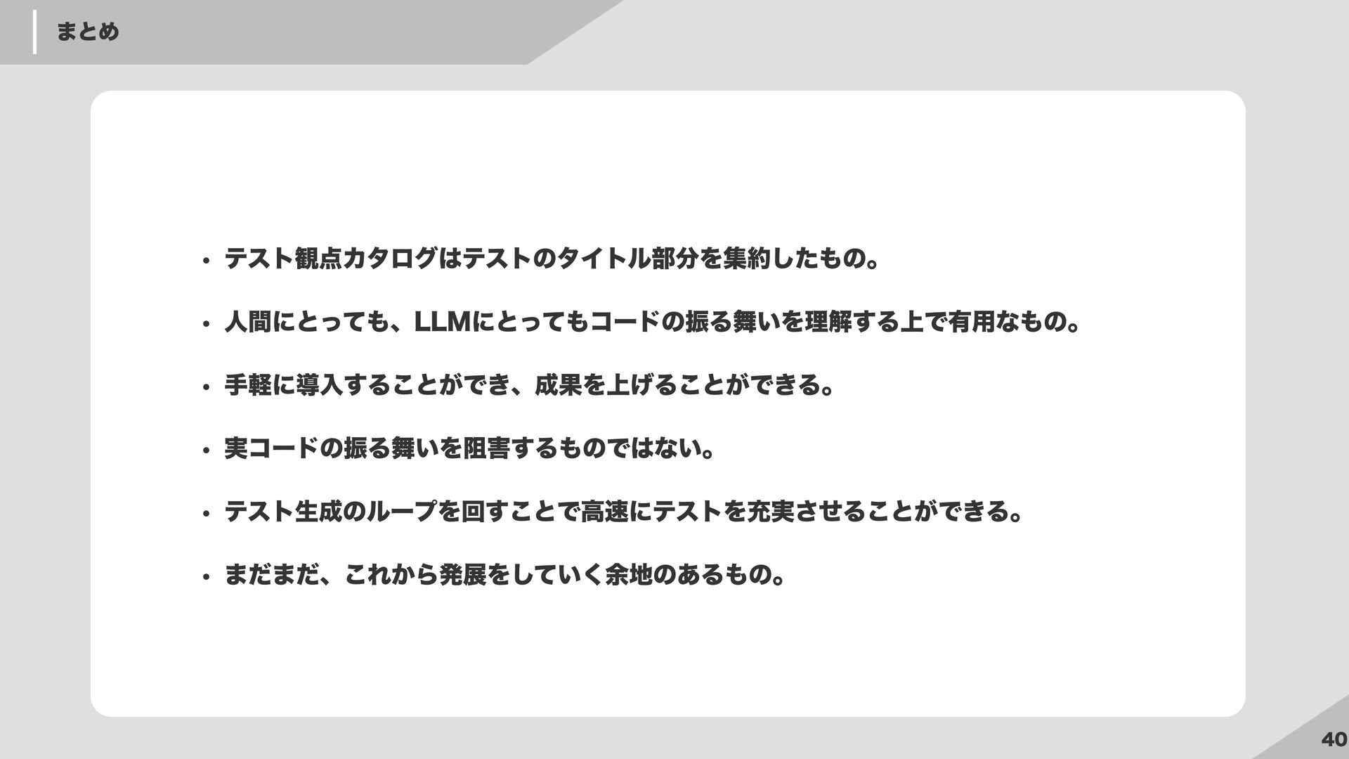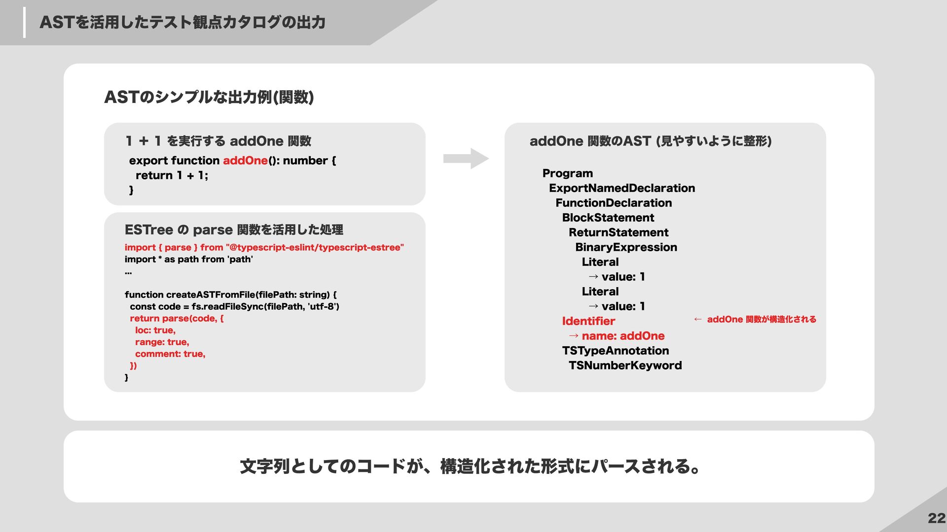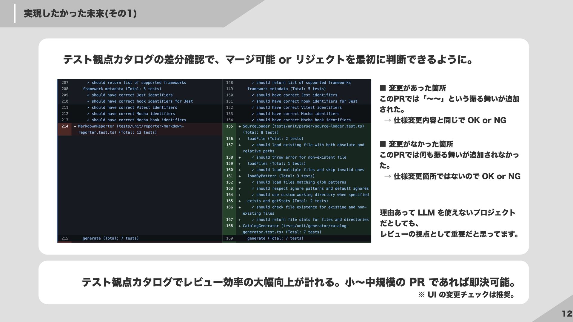 「AST×Reporterでテストから"観点カタログ"を自動生成し、LLMと人間の共通Specにする」