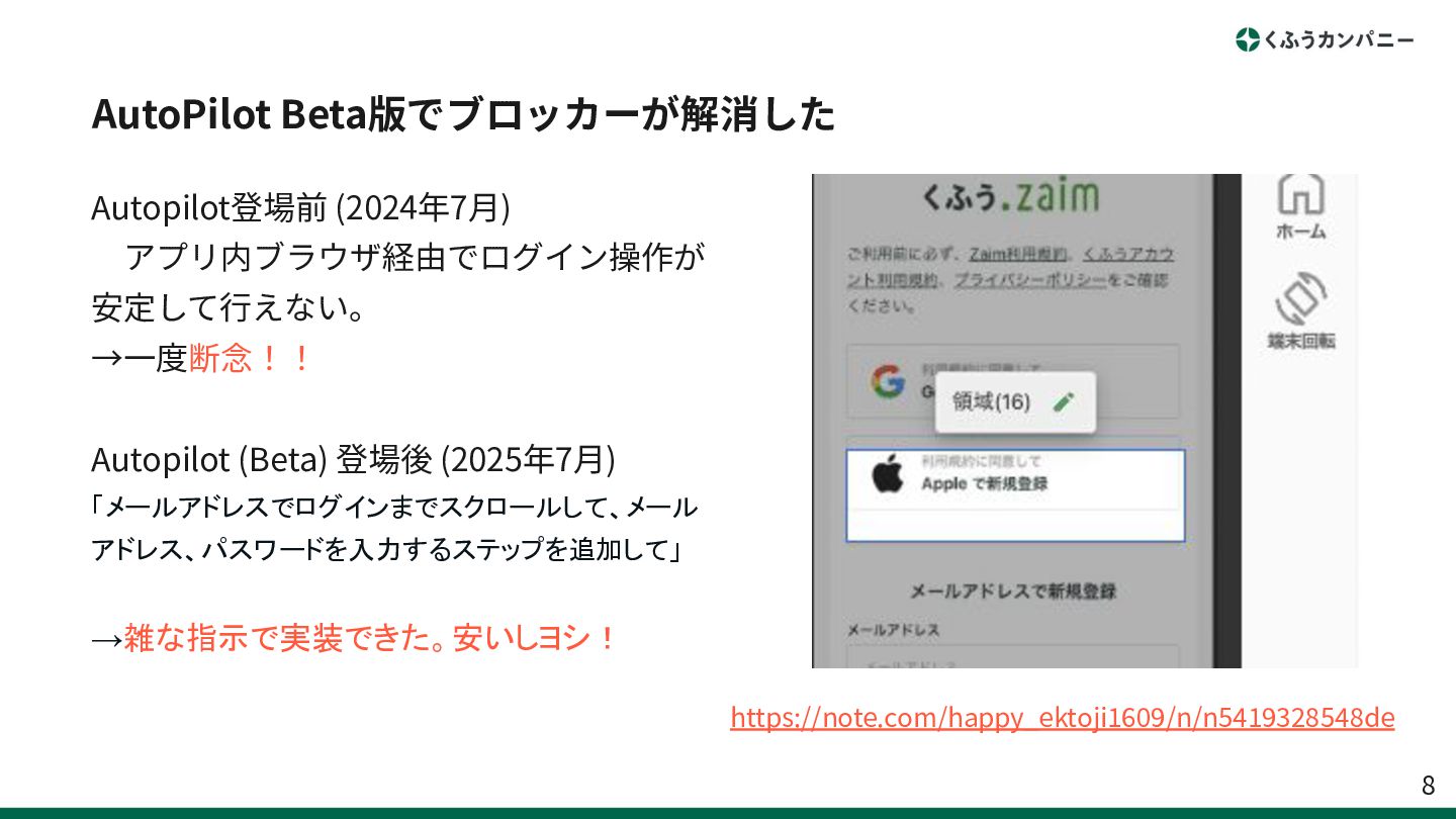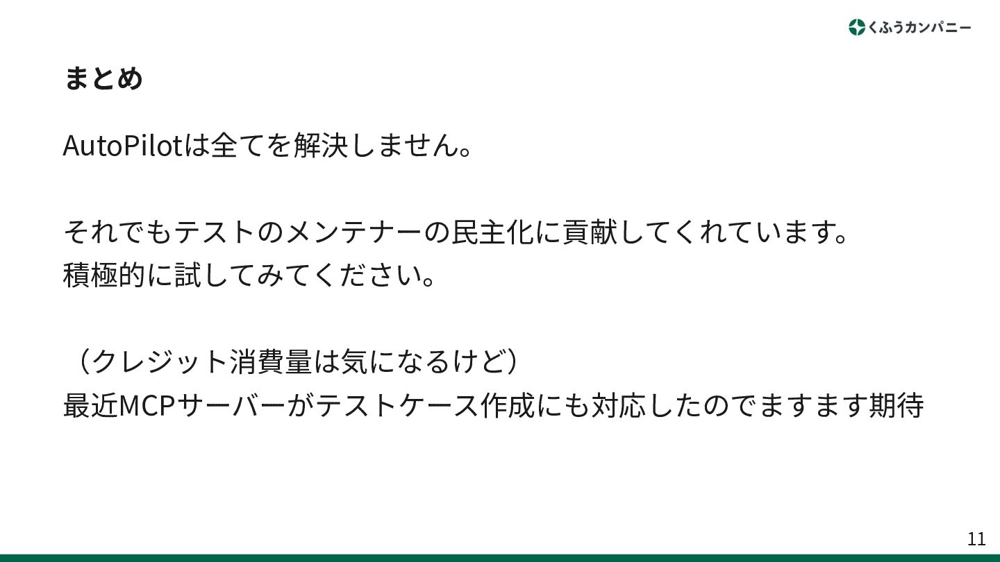 【オンライン】MagicPodミートアップ 2026.02.27 19:00-20:45 資料 Autopilotによって自動化の導入ハードルがどのように下がったのか、その具体的な効果と運用上の所感についてお話しします。 https://magicpod.com/events/entry-1091/