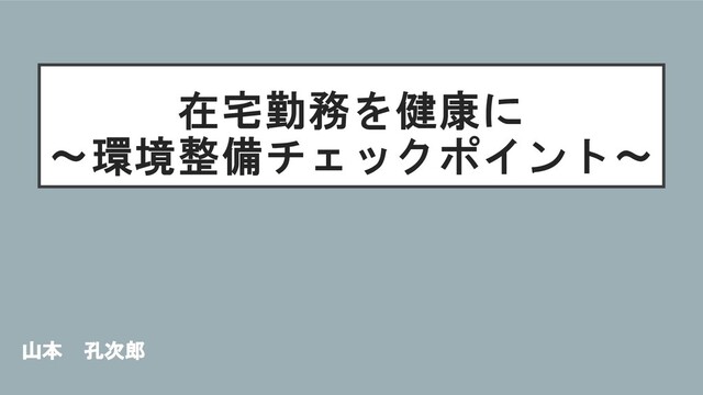 在宅勤務を健康に ~環境整備チェックポイント~ 山本 孔次郎
