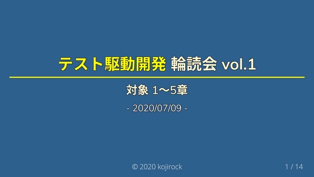 第2 章 明白な実装 明白な実装 明白な実装 明白な実装 明白な実装 明白な実装 TDD の TDD の TDD の TDD の TDD の TDD の3 つの戦略 3 つの戦略 3 つの戦略 3 つの戦略 3 つの戦略 3 つの戦略 1 1 1 1 1 1. . . . . . 仮実装 仮実装 仮実装 仮実装 仮実装 仮実装 ベタ書きの値を使ってコードを書き、実装を進める際に変数に置き ベタ書きの値を使ってコードを書き、実装を進める際に変数に置き ベタ書きの値を使ってコードを書き、実装を進める際に変数に置き ベタ書きの値を使ってコードを書き、実装を進める際に変数に置き ベタ書きの値を使ってコードを書き、実装を進める際に変数に置き ベタ書きの値を使ってコードを書き、実装を進める際に変数に置き 換えていく 換えていく 換えていく 換えていく 換えていく 換えていく 2 2 2 2 2 2. . . . . . 明白な実装 明白な実装 明白な実装 明白な実装 明白な実装 明白な実装 頭の中の実装をすぐにコードに落とす 頭の中の実装をすぐにコードに落とす 頭の中の実装をすぐにコードに落とす 頭の中の実装をすぐにコードに落とす 頭の中の実装をすぐにコードに落とす 頭の中の実装をすぐにコードに落とす 3 3 3 3 3 3. . . . . . 三角測量 三角測量 三角測量 三角測量 三角測量 三角測量 次章で説明 次章で説明 次章で説明 次章で説明 次章で説明 次章で説明 © 2020 kojirock 8 / 14