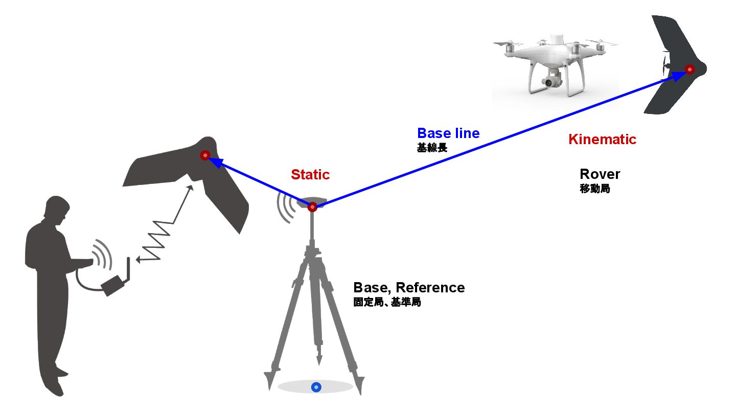 Kinematic Base, Reference 固定局、基準局 Rover 移動局 Static Base line 基線長