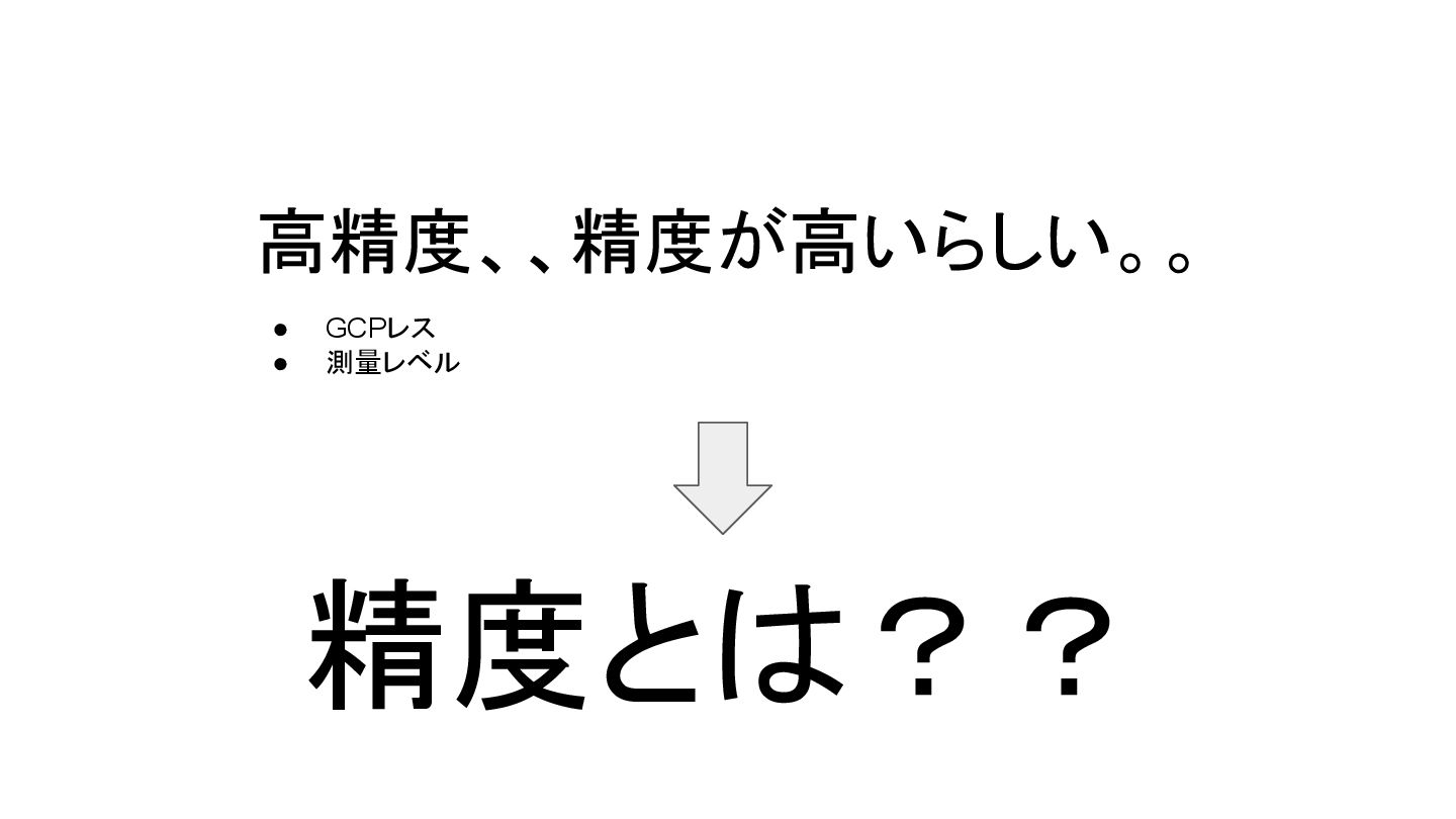 高精度、、精度が高いらしい。。 精度とは?? • GCPレス • 測量レベル