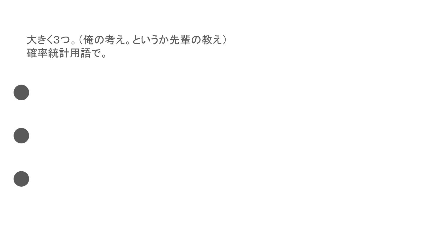 - 再現性 大きく3つ。(俺の考え。というか先輩の教え) 確率統計用語で。