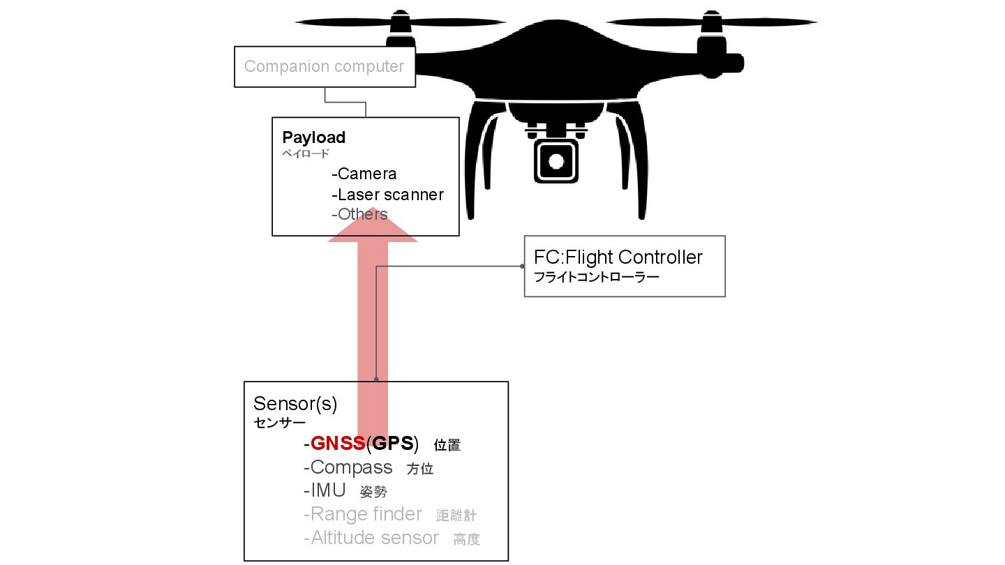 -Altitude sensor 高度 Companion computer Payload ペイロード -Camera -Laser scanner -Others