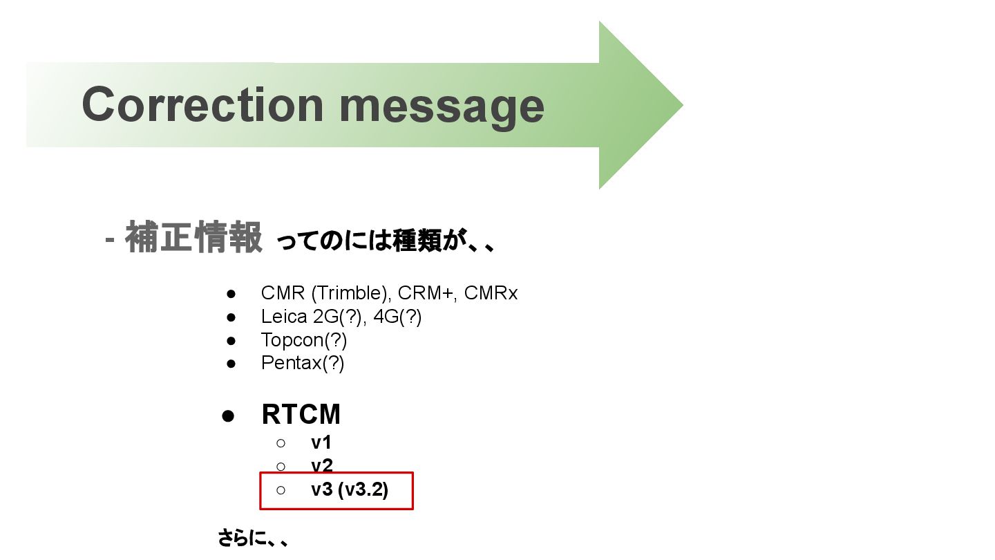 Correction message - 補正情報 ってのには種類が、、 • CMR (Trimble), CRM+, CMRx