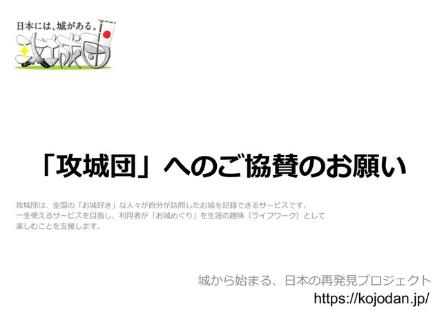 [email protected] URL https://kojodan.jp サイト開設 2014年4⽉6⽇ コミュニケーション・デザイナー。メディアプロデューサー。企画屋。 ⽴命館⼤学経済学部卒業後、ニフティ、オンライン書店ビーケーワン、シックス・アパート、ブッ クオフオンライン等を経てフリーに。現在は数社のマーケティング⽀援の顧問・アドバイザーを務 める。これまでに「まんがseek」「crossreview」などさまざまなメディアを⽴ち上げる。 「攻城団」の企画発案者であり、コンテンツの企画・編集、システム開発、ユーザーとのコミュニ ケーション全般のほか、全体のマネジメントを担当。 河野 武 株式会社インテリジェンス、スポーツデータコーポレーション株式会社等ベンチャー企業の創業期 での経験を経て2006年、株式会社ワークスエンターテイメントを創業。3期代表を務める。 営業から組織開発、事業開発領域までをカバーするポリパレント性が特⻑。 現在は数社の経営⽀援を⾏いつつ、「攻城団」プロジェクトに参加。 「攻城団」においては広告やスポンサー獲得を⽬的に企業や⾃治体との交渉全般を担当。 瀧⽥ 幸介