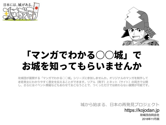 اը ࣄલʹૉࡐʢ͓ͱਓ ʹ·ͭΘΔࢿྉʣΛ͝ఏ ڙ͍ͩ͘͞ɻ ʢߪೖ͓ࢧ͍͠·͢ʣ 誰を取り上げるか どのあたりのエピソード を取り上げるかを事前に 関係者で決めます。 ૉࡐɺऔࡐใΛݩʹ ࣥචʹೖΓ·͢ɻ ฒߦͯ͠ɺऔࡐใΛ هࣄͱͯ͠߈ஂʹܝ ࡌ͠·͢ɻ ฤू෦ͱϚϯΨՈ͕ݱ Λऔࡐ͠·͢ɻ ͓Λ͑Δํߦఔ ͷίʔσΟωʔτΛ͓ ئ͍͠·͢ɻ ϚϯΨޙɺࢠ൛ ͷฤूΛ͓͜ͳ͍ೲ ͠·͢ɻ෦ɾظ ͝૬ஊ͠·͢ɻ ϚϯΨޙɺ߈ஂ ʹͯ৴Λ։࢝͠·͢ɻ وࣾͰϓϨεϦϦʔ ε৴Λ͓ئ͍͠·͢ɻ • ݩͷจԽ՝ɾྺ࢙՝ͷํͰɺमʹೖ͍͚ͬͯͨͩΔํΛ͝հ͍ͩ͘͞ • ࢠ൛ʮԷʯՁ֨ʹͯೲ͍ͨ͠·͢ɻൢചՁ֨ਵҙʹܾ͝ఆ͍ͩ͘͞ 内容については全員で検討(たたき台となる企画案は攻城団が提出します)、マンガの執筆から印刷 までの進⾏管理はすべてお任せください。またணख͔Βىࢉͯ͠ɺʙϲ݄ͷεέδϡʔϧΛ ͝ఆ͍ͩ͘͞ɻ
