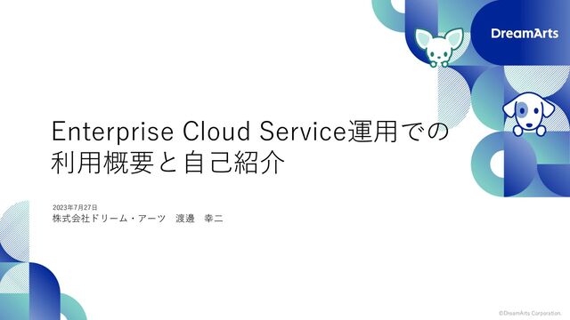 2023/11/29 ©DreamArts Corporation. 株式会社ドリーム・アーツ 渡邊 幸⼆ 2023年7⽉27⽇ Enterprise Cloud Service運⽤での