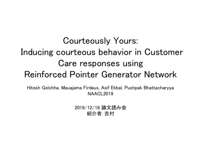 courteous behavior in customer care responses. • They create large benchmark corpus • Proposed framework ◦ Model the dialogue history and the past emotional states through emotional embeddings. • Automatic and Human evaluation • Qualitative and Quantitative analysis ◦ correct courteous behavior and content preservation, along with minor inaccuracies