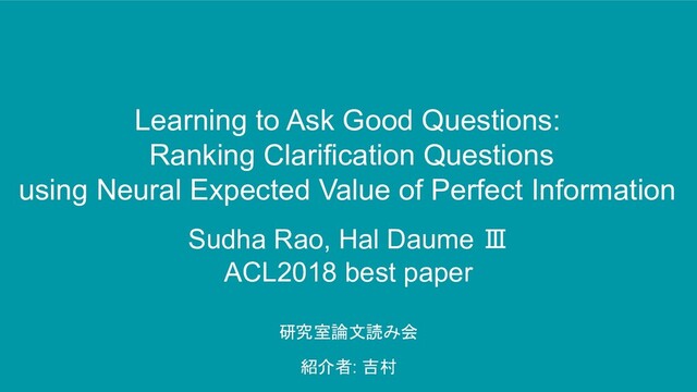 で他の q が original よりも有用な可能性があるから • テストセットの500事例を人手で評価 ⭕ • 専門的知識のある人を使って annotation する • 投稿と、ランダムに並べた10個の質問候補を見せてラベルづけしてもらう ◦ 最も良い質問に “best” ◦ 有用な質問に “valid”(bestにもvalidとつける) • 10人の Annotator を2つに分けて、1人100事例を Annotation する • Kappa 係数 best: 0.15 valid: 0.58 • 元の質問が2人の Annotator によって best, valid と選択される頻度を計算 ◦ 1人が best 72%, 2人が best 20% ◦ 1人が valid 88%, 2人が valid 76%