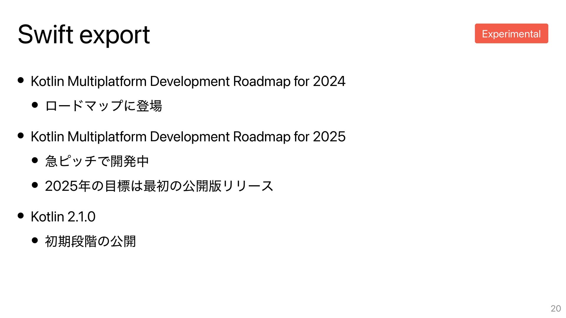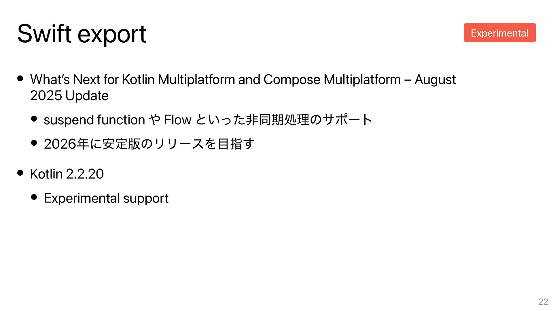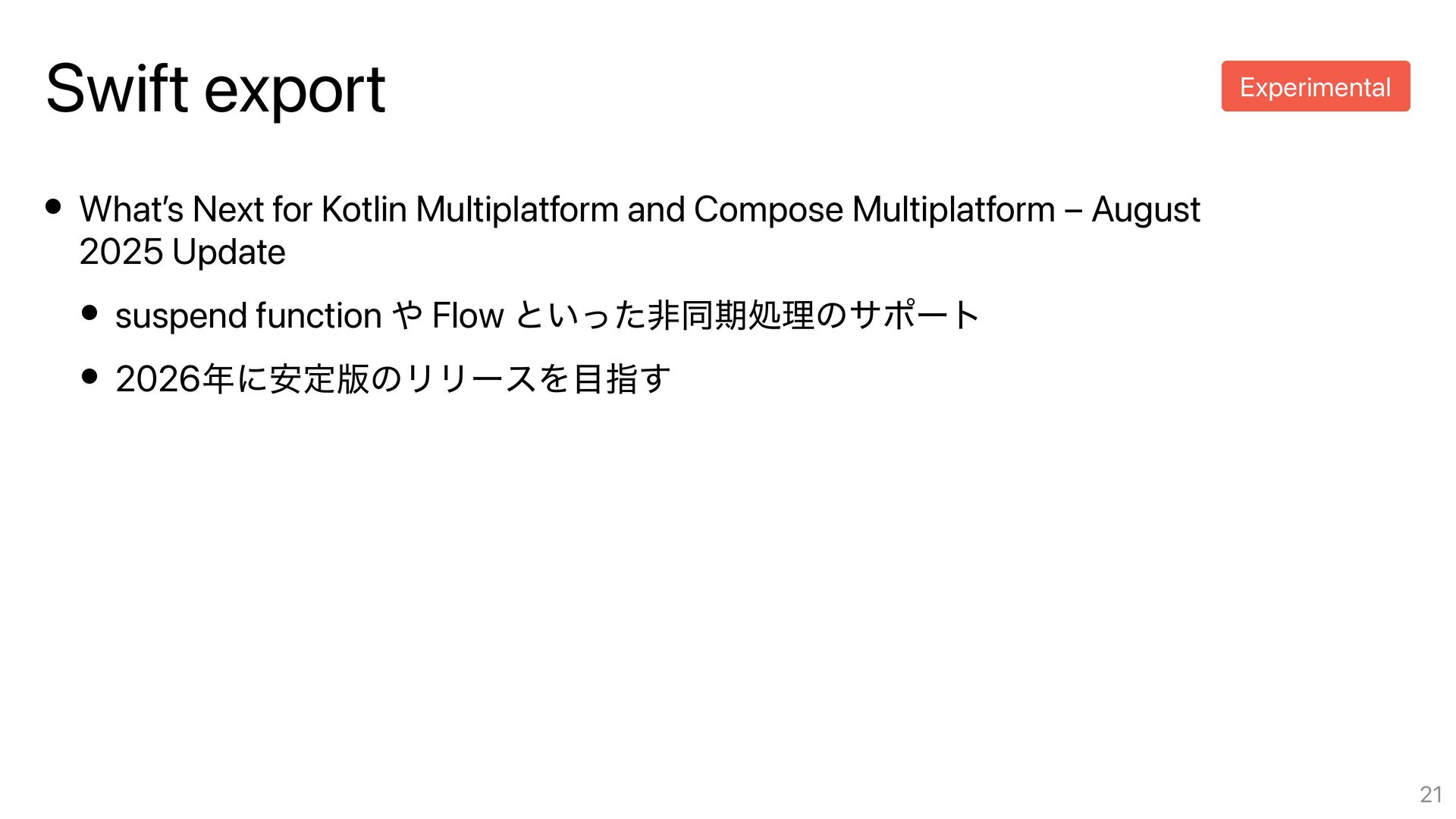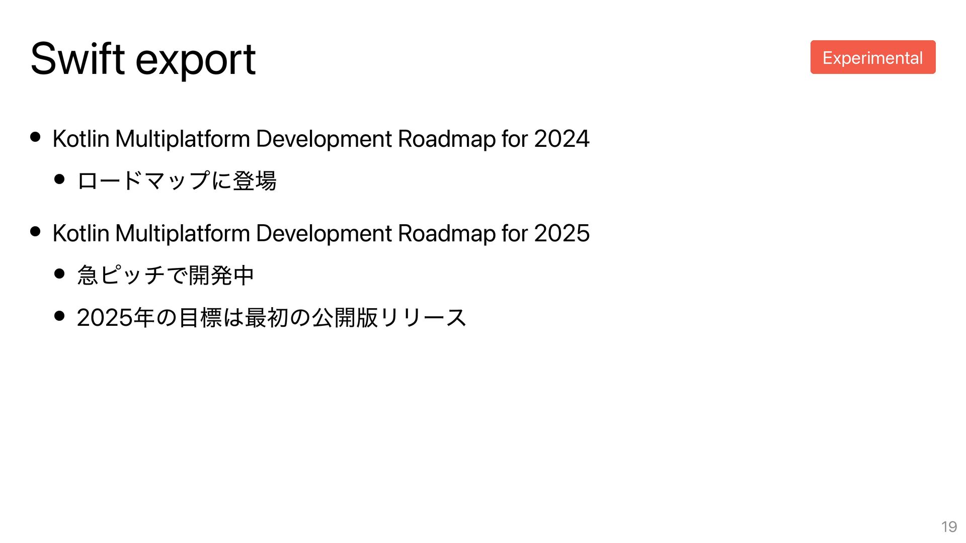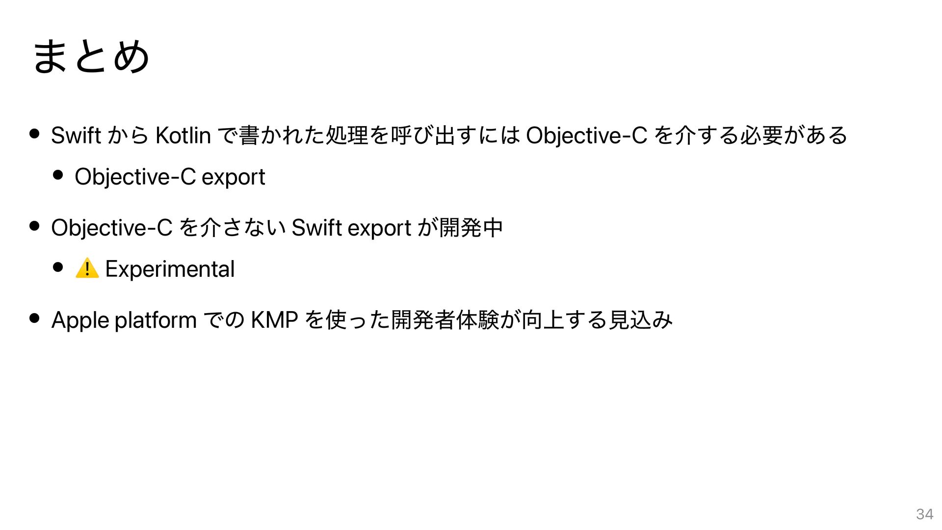 Λհ͞ͳ͍ Swift export ͕։ൃத Experimental Apple platform Ͱͷ KMP Λͬͨ։ൃऀମݧ্͕͢ΔݟࠐΈ 34