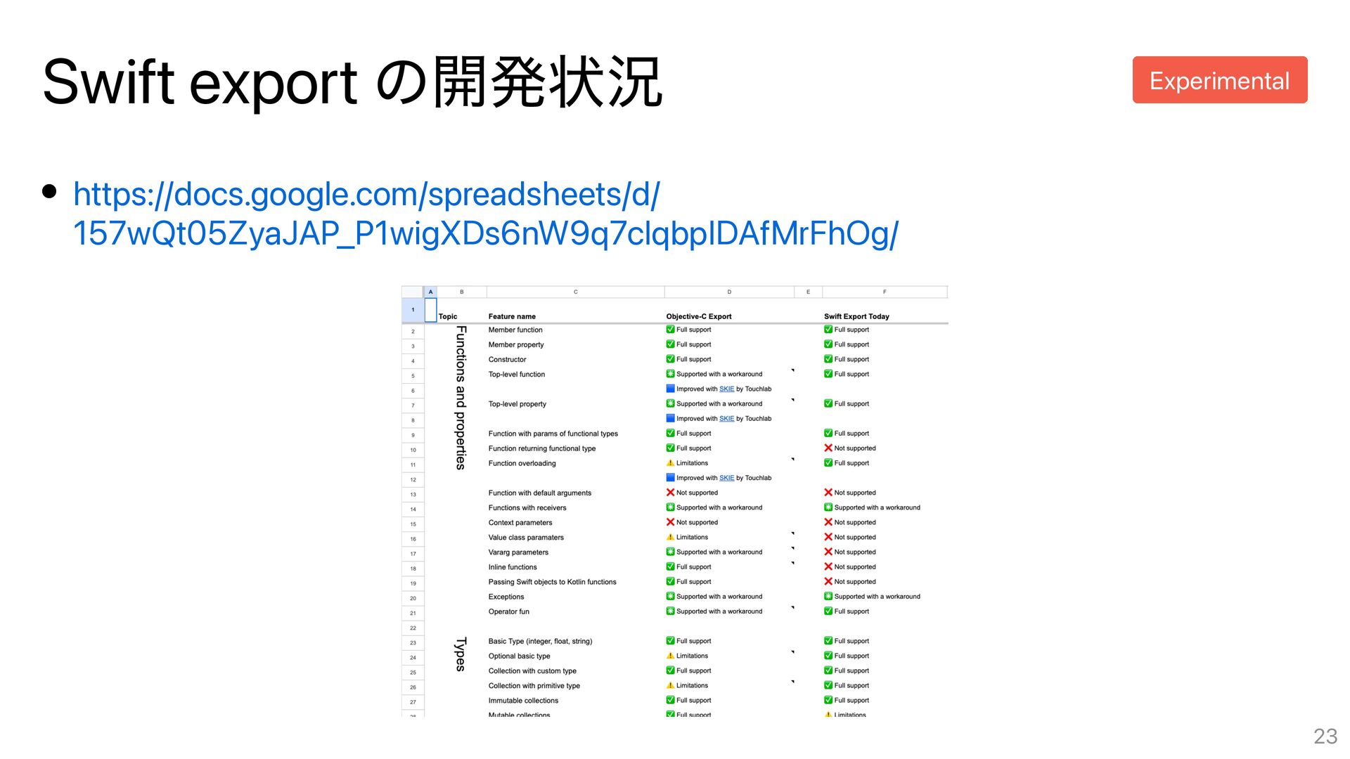 Swift export ͷ։ൃঢ়گ Experimental https://docs.google.com/spreadsheets/d/ 157wQt05ZyaJAP_P1wigXDs6nW9q7clqbpIDAfMrFhOg/ 23